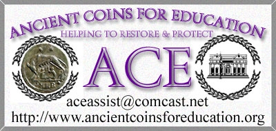 | ACE is a program which distributes coins and reference materials to teachers who wish to engage their students in the highly educational and exciting activity of restoring and attributing ancient coins. I think this is an extraordinarily good idea and encourage you to visit the web site above and to consider donating to this cause. If you are a teacher, please consider contacting them for an application so your school can participate. |